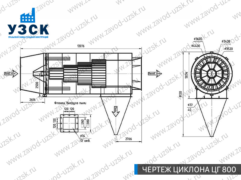 Горизонтальные циклоны-искрогасители ЦГ поставляются в Ярославле в сборке или же транспортными единицами для последующей сборки, если предназначены для работы с большими объемами.