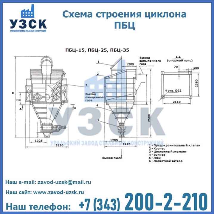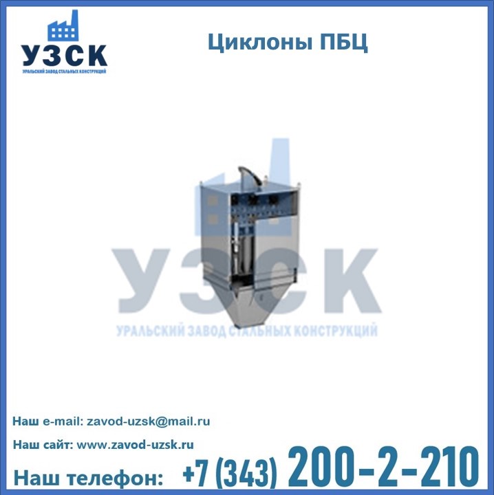 Завод «УЗСК» в Ярославле предлагает приобрести циклоны ПБЦ и прочие устройства, полностью укомплектованные и готовые к эксплуатации. Мы гарантируем соответствие оборудования всем требованиям ГОСТ и ТУ, износостойкость и высокую производительность предлагаемого оборудования. Уральский Завод Стальных Конструкций изготавливает и продает надежное, эффективное и производительное оборудование, имеющее длительную гарантию и большой эксплуатационный ресурс. Если требуется изготовить циклон нестандартных размеров, то такой вариант выполнения заказа тоже предусмотрен, так как предприятие имеет собственные производственные площади и надежных поставщиков. На все поставляемое или производимое оборудование имеются чертежи и прочая техническая документация. Заказать и купить циклоны или прочее оборудование высокого качества и по доступной цене можно через наш сайт или по указанному в разделе «Контакты» телефону.