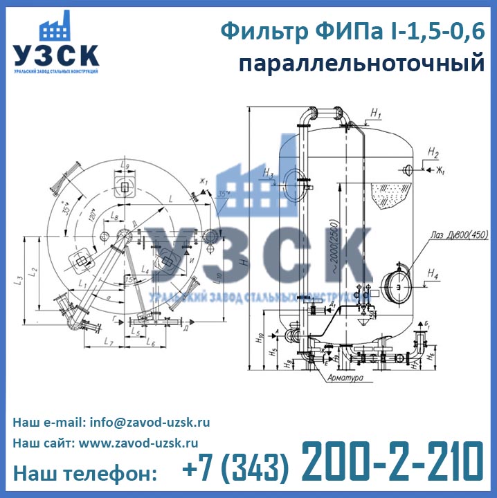 Уральский Завод Стальных Конструкций – ведущий производитель фильтрационного оборудования, осуществляющий изготовление параллельноточных фильтров ФИПаI 1,5-0,6 в соответствии требованиями ГОСТ. Получить консультацию по подбору оборудования, уточнить актуальные цены фильтров ФИПа I 1,5-0,6 в Ярославле и сроки их изготовления, запросить технические характеристики и сертификационные документы Вы можете, связавшись с менеджерами отдела продаж завода УЗСК по координатам, указанным в разделе «Контакты». Если Вы уже определились с выбором и хотите купить фильтр ФИПа I ступени очистки прямо сейчас, заполните форму онлайн заказа размещенную ниже.