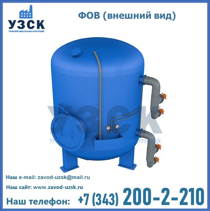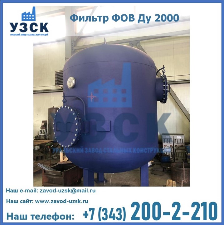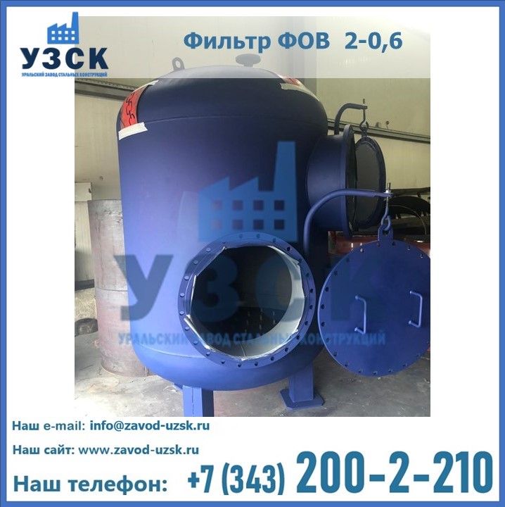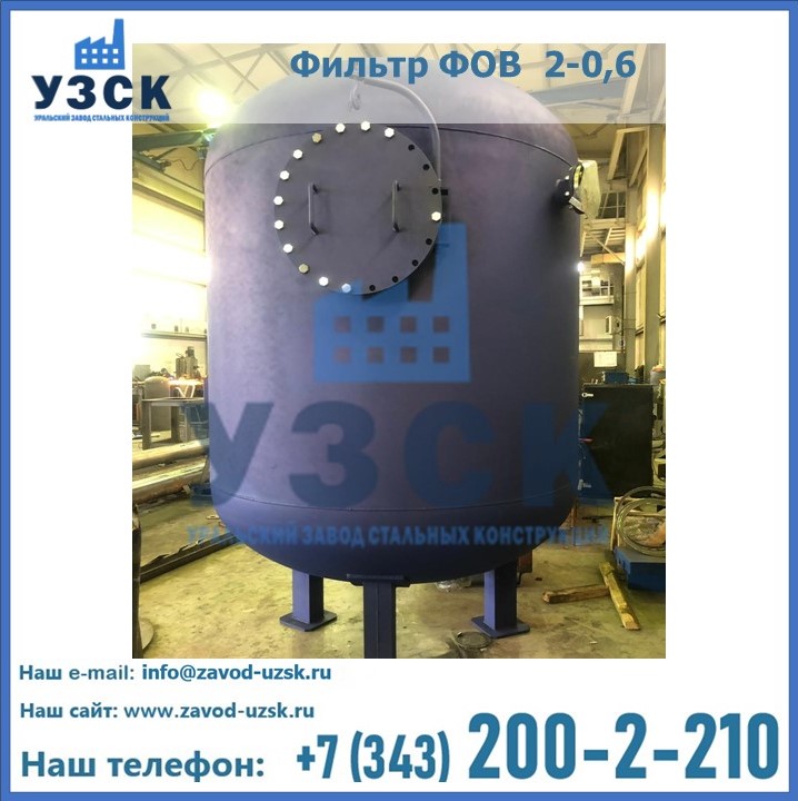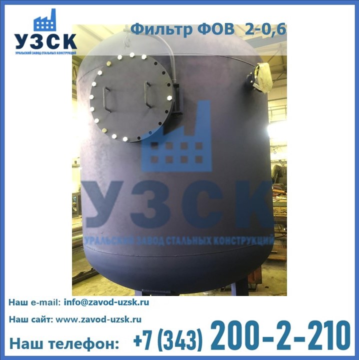 Удаление взвешенных веществ различного уровня дисперсности из рабочих жидкостей эффективно проводит фильтр осветлительный типа ФОВ (скорый или механический) — вертикально-цилиндрической формы установка, разработанная для систем водоподготовки различного класса. Оборудование представляет собой однокамерный агрегат для очистки воды рекомендованный для применения на станциях очистки стоков, в коммунальных котельных, на ТЭЦ, в промышленных отопительных системах и пр. Заказать производство ФОВ фильтров предлагает наш Уральский завод стальных конструкций в Ярославле. У нас можно купить фильтрационное оборудование различного класса и типа, в том числе фильтры ФОВ из нержавеющей стали.